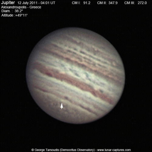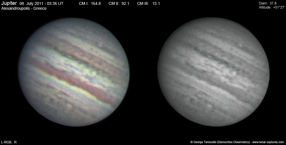 | July 28, 2011 Condition not so perfect, the GRS and the satellite Io with shadow is visible |