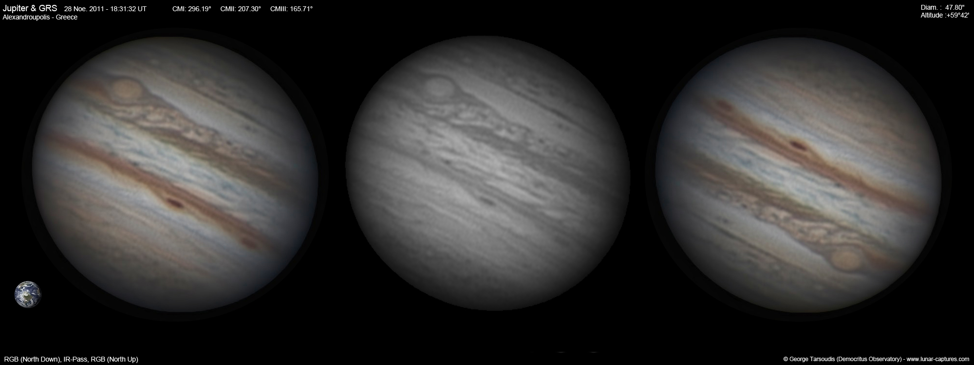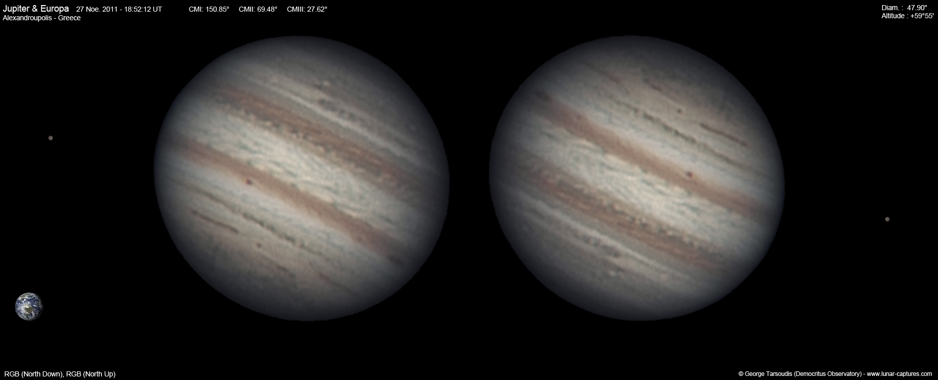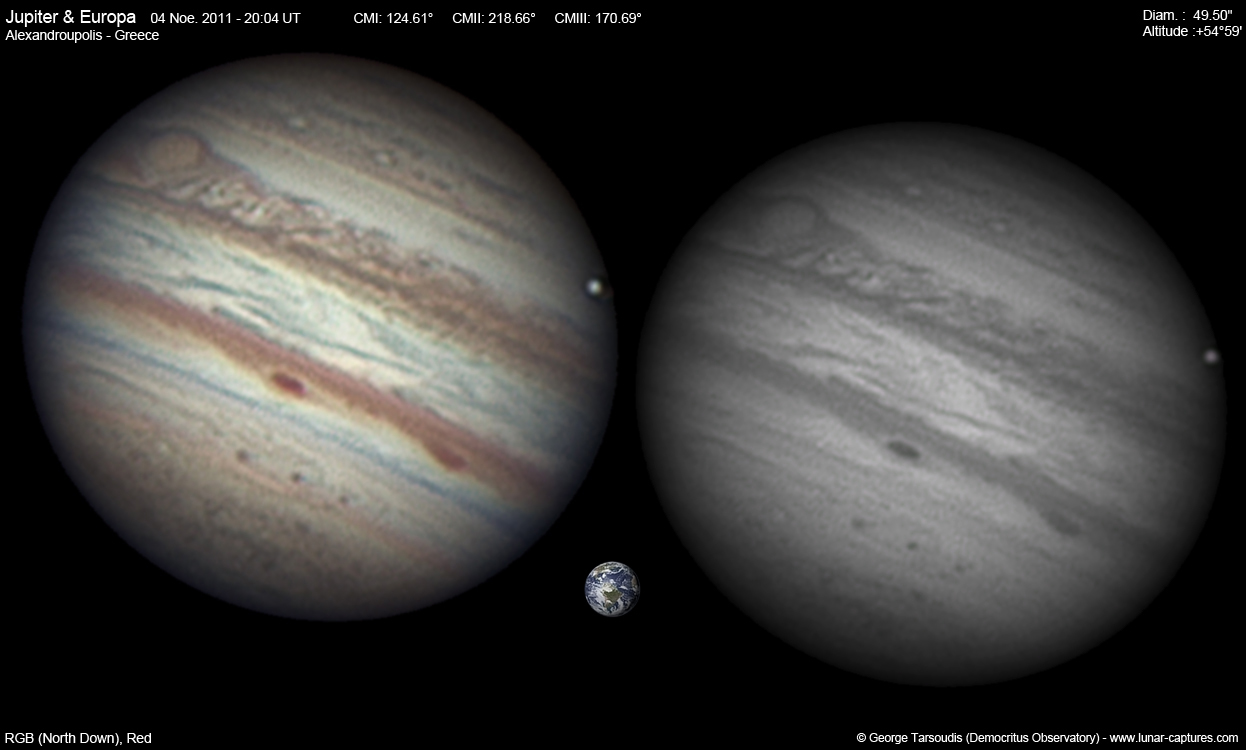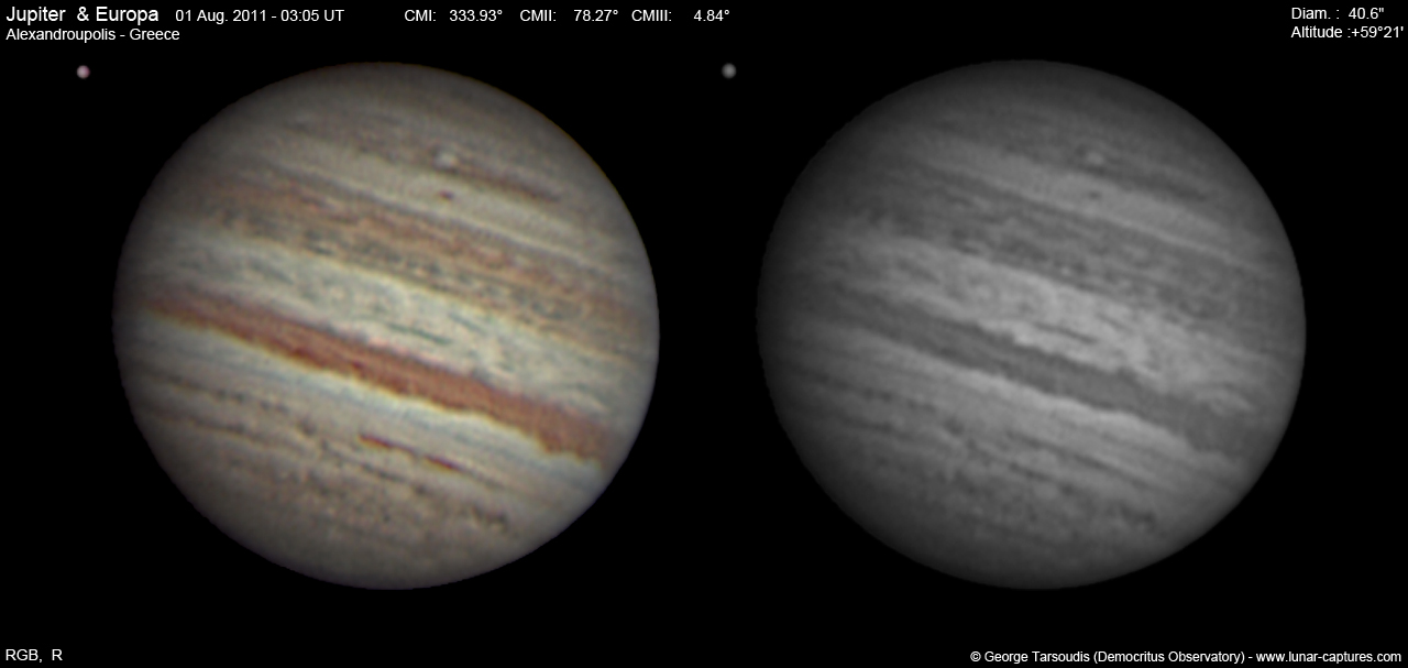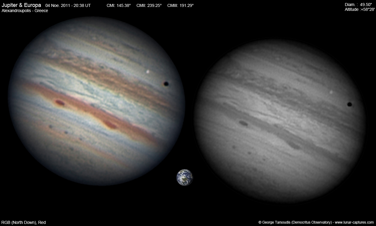 | November 04, 2011 Condition not so perfect, the GRS is visible with the satellite Europa |
