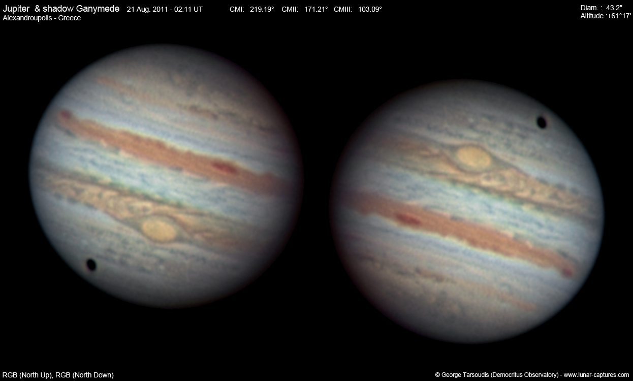 | August 21, 2011 Condition perfect, the GRS and shadow of the satellite Ganymede is visible |