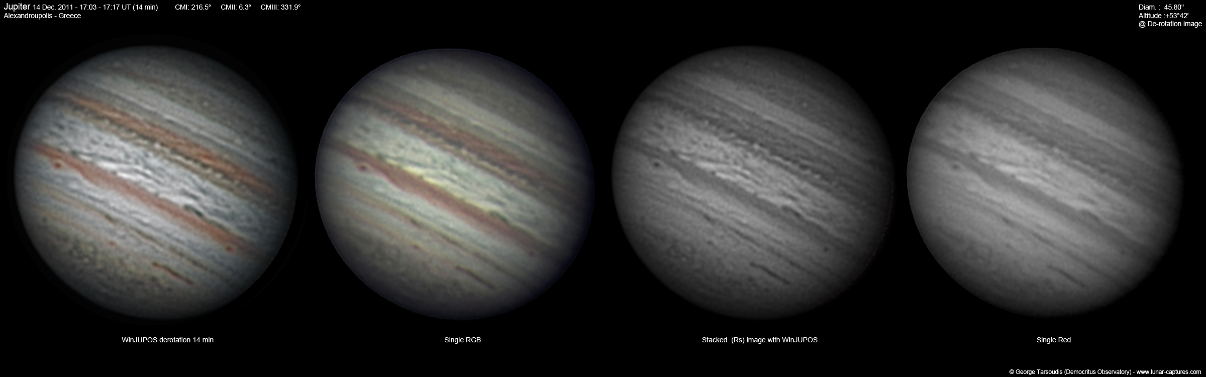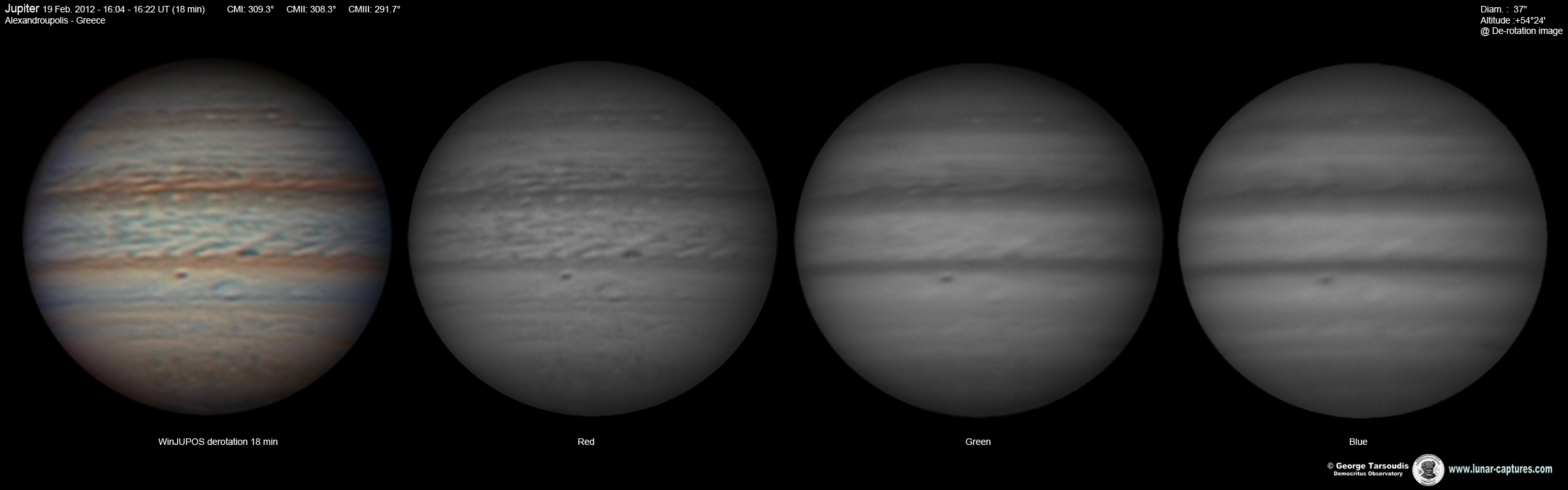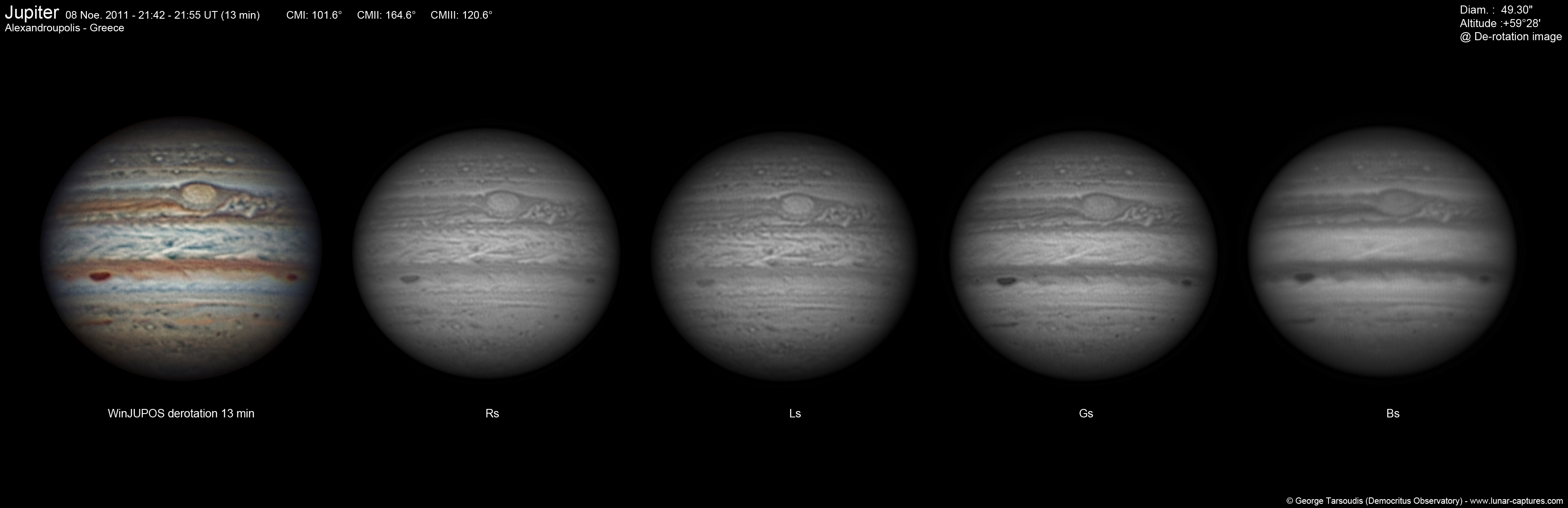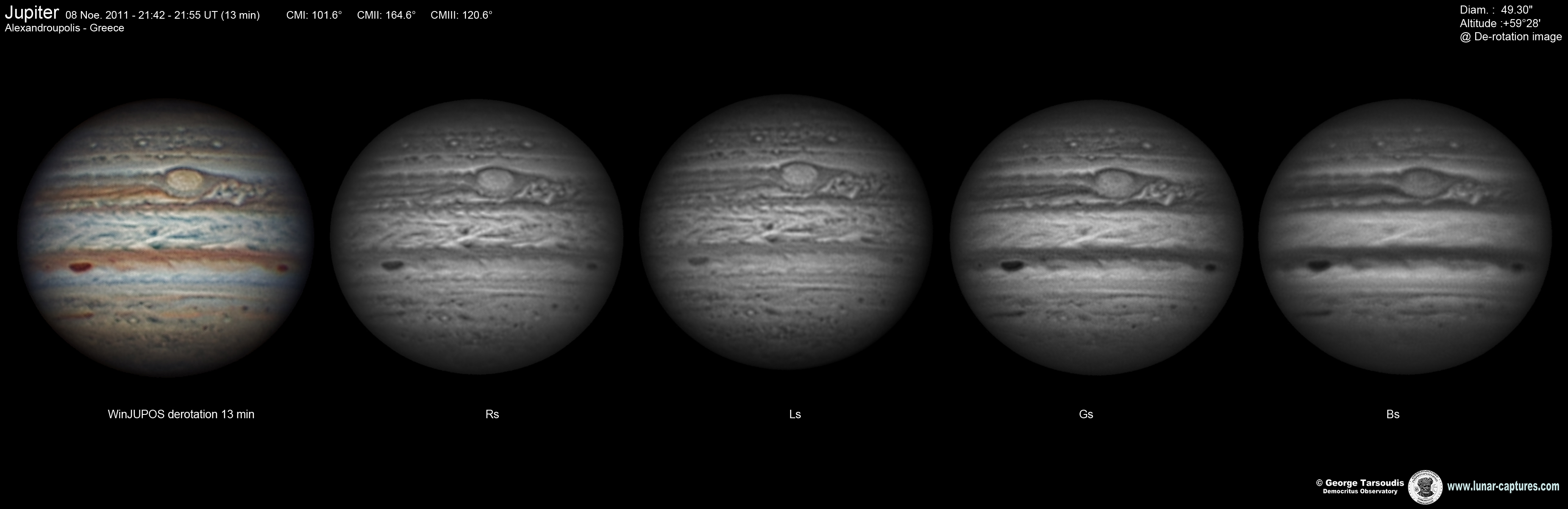 ![]() Jupiter & GRS with De-Rotation (WinJUPOS) 13min (CM I: 101) |