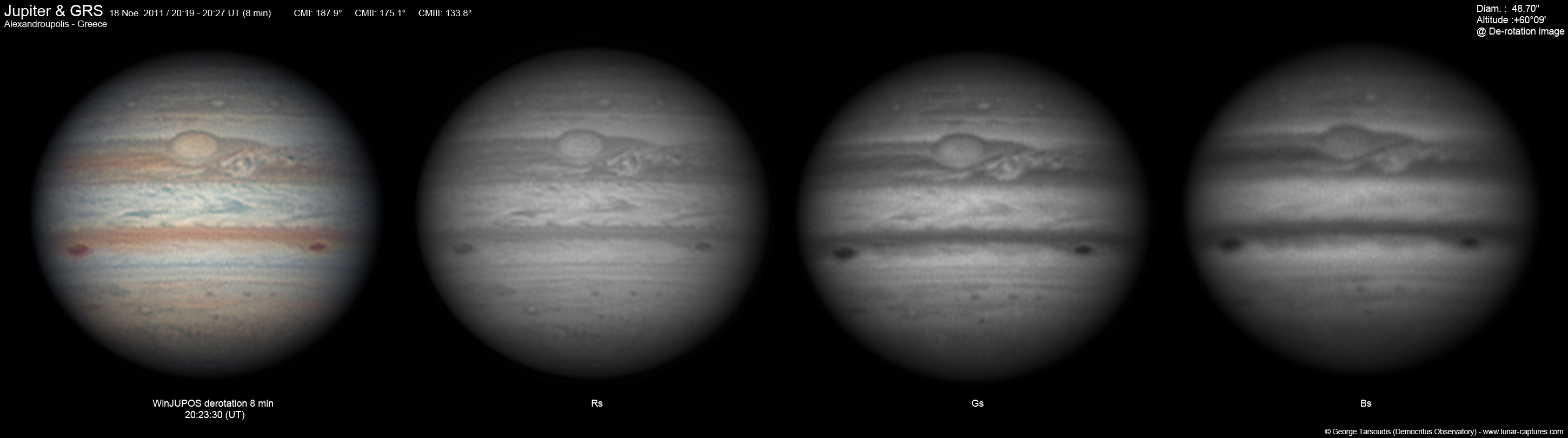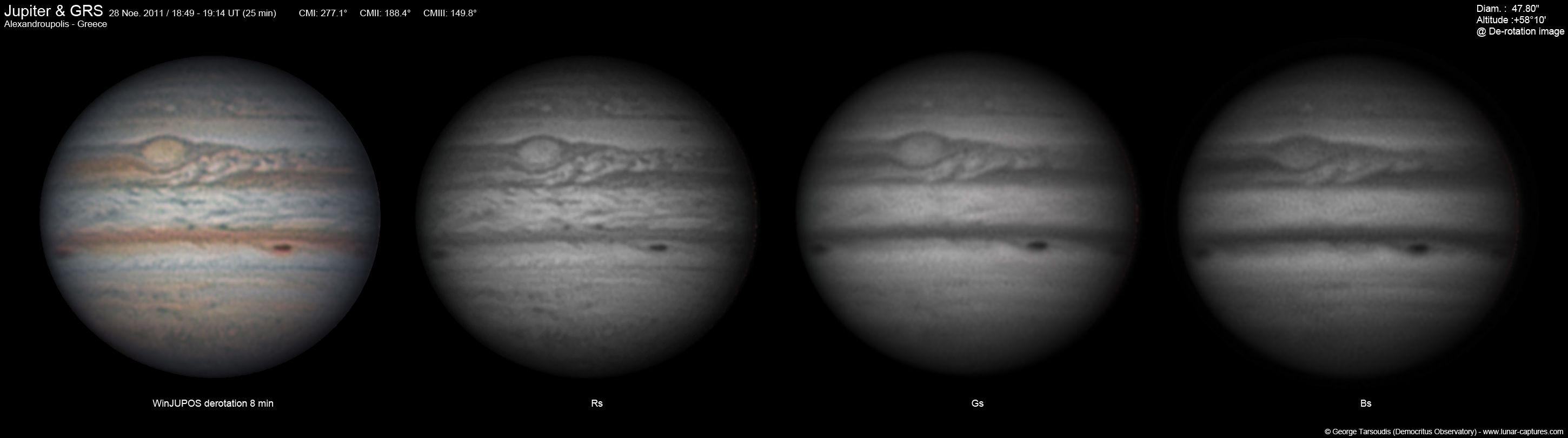 ![]() Jupiter & GRS with De-Rotation (WinJUPOS) 8min (CM I: 277) |