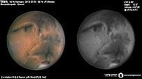 | January 23, 2012 I reprocess my last Mars capture at 23 January 2012 with Autostakkert program from Emil Kraaikamp. Real the final result is more clear with good details. Condition bad with many cloudys. I have capture only 16min. - Elysium - Elysium Mons - Trivium Charontis - Cerberus I - Mare Cimmerium - Mare Tyrrhenum - Syrtis Minor - Syrtis Major |