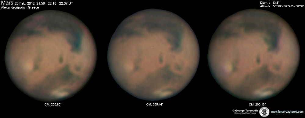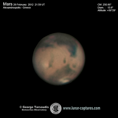 | February 28, 2012 Condition poor. - Syrtis Major - Nodus Alcyonius - Elysium - Utopia - Arabia - Arabia - Aeria |
