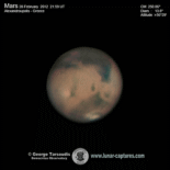 | March 17, 2012 Condition average. I have capture 38min. - Nilliacus Lacus - Mare Acidalium - Nikokeras - Chryse - Tharsis - Arcadia - Nix Olympica (Olympus Mons) with cloudys - Phoenicis Lacus - Noctis Lacus |