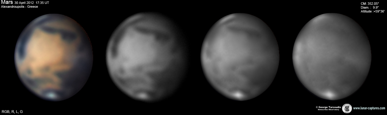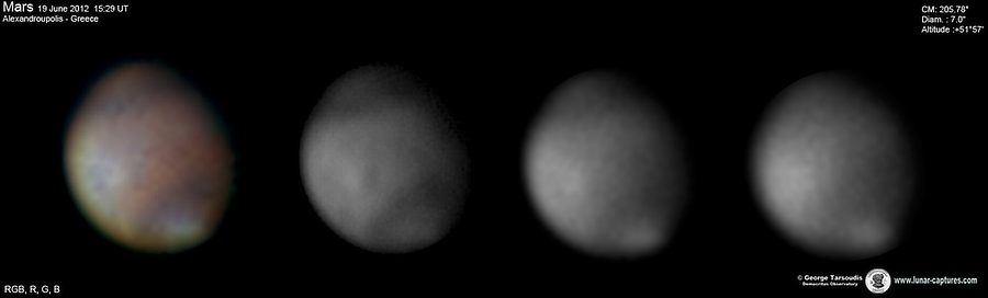 | March 19, 2012 Condition average. I have capture 38min. - Nilliacus Lacus - Mare Acidalium - Nikokeras - Chryse - Tharsis - Arcadia - Noctis Lacus |