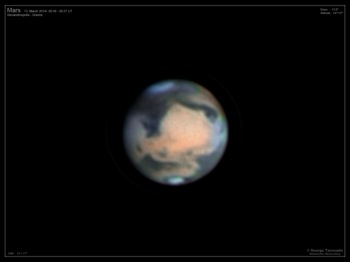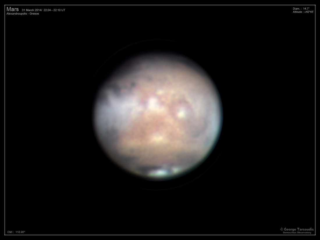 Also Interest region we can see at this capture : - Valles Marineris - Acidalia Planitia with some clouds - Alba Patera is visible - Chryse Planitia with near a Kasei Valles -The Lunae Planum region with small clouds